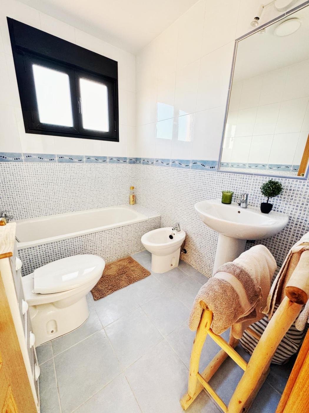 La casa o chalet dispone de 2 dormitorios, una cocina con lavavajillas y horno, y 2 baños con bidet, secador de pelo y lavadora. Hay TV de pantalla plana.