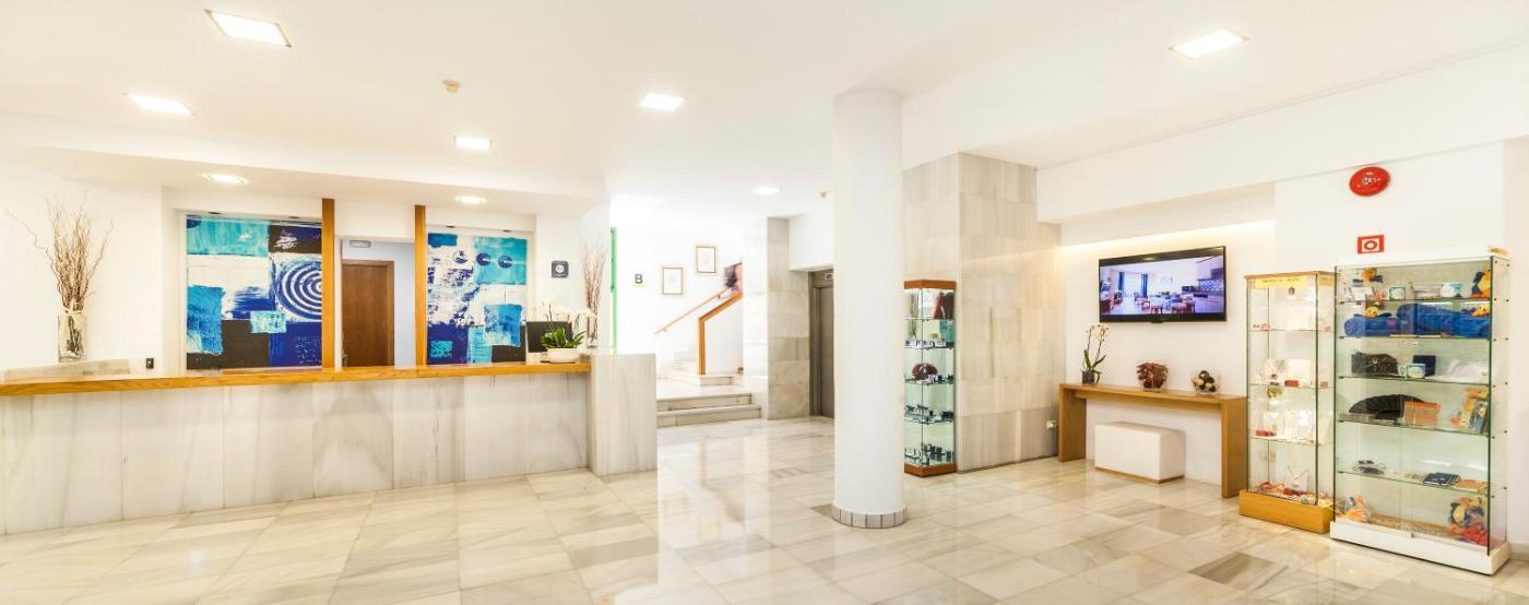 La piscina al aire libre del Globales Nova está rodeada de bonitos jardines. También hay bar y terraza solárium junto a la piscina, así como bar salón con TV.